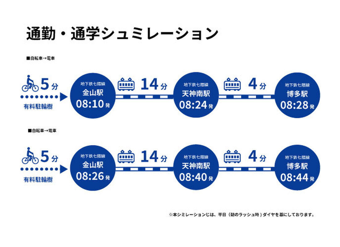 - 福岡市地下鉄七隈線「金山」駅 徒歩14分 自転車で5分福岡市地下鉄七隈線「茶山」駅 徒歩19分 自転車で6分西鉄バス「飯倉」バス停 徒歩3分
