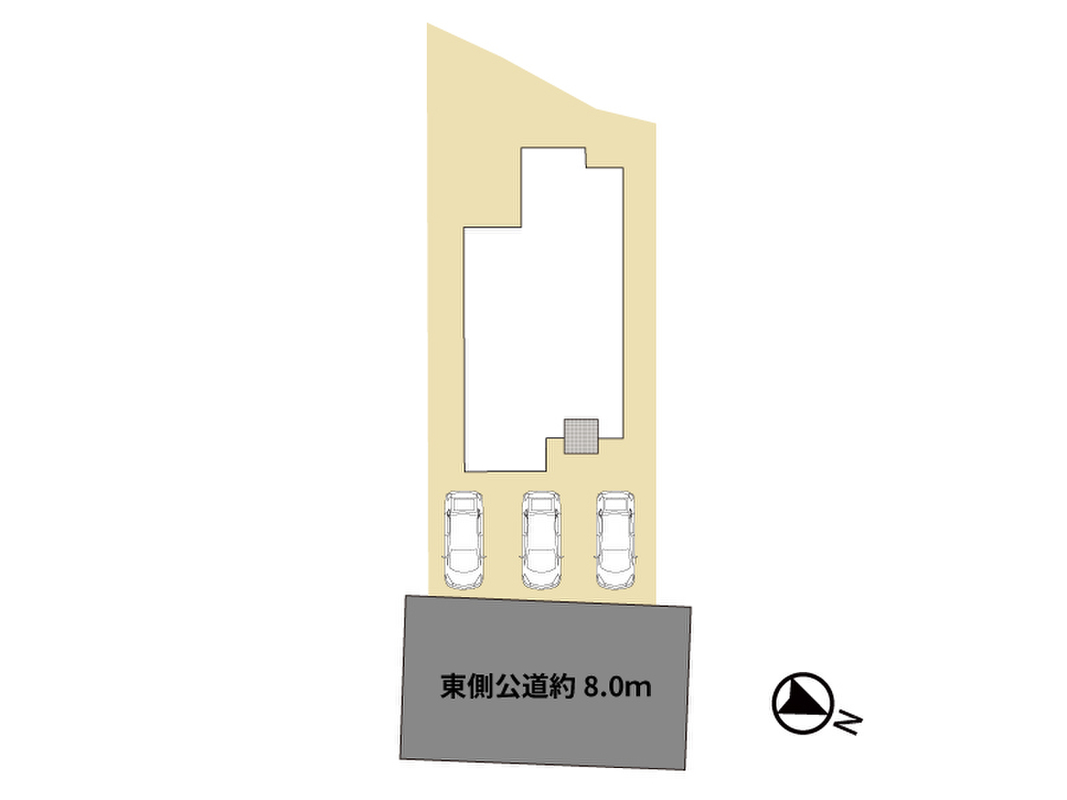 | 駐車場 | 3台(並列3台) | 道路の幅員 | 東側幅員約8.0m公道 |