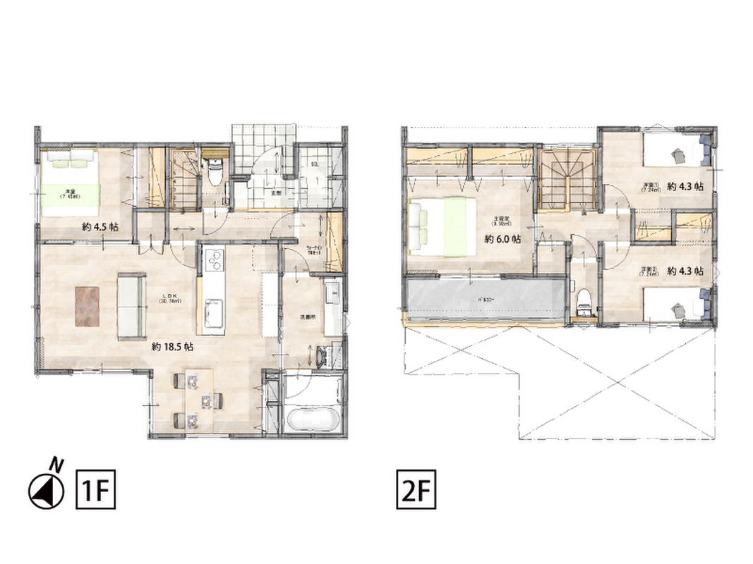 新築一戸建て 【並列3台駐車×18帖超LDK】育:kiraku 福岡市西区太郎丸 6号棟