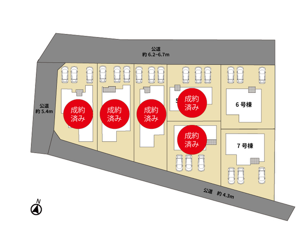 | 駐車場 | 3台(並列3台) | 道路の幅員 | 北側 公道6.4m |