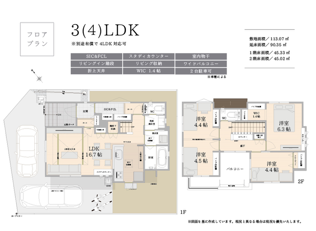 | 建物面積 | 90.35m2 | 土地面積 | 113.07m2 |