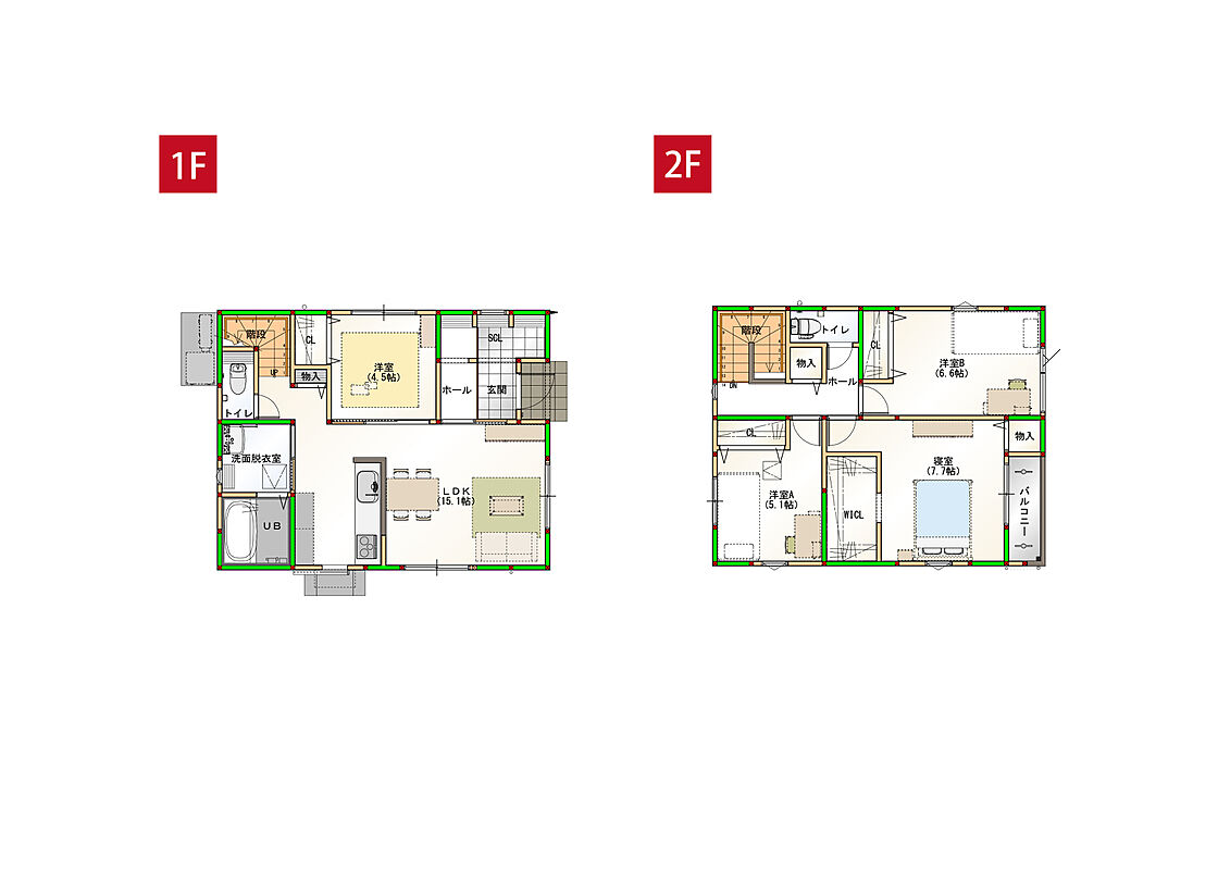 - ※完成予想図やCG合成画像は、門塀・植栽・庭・外観等、実際とは多少異なる場合があります。