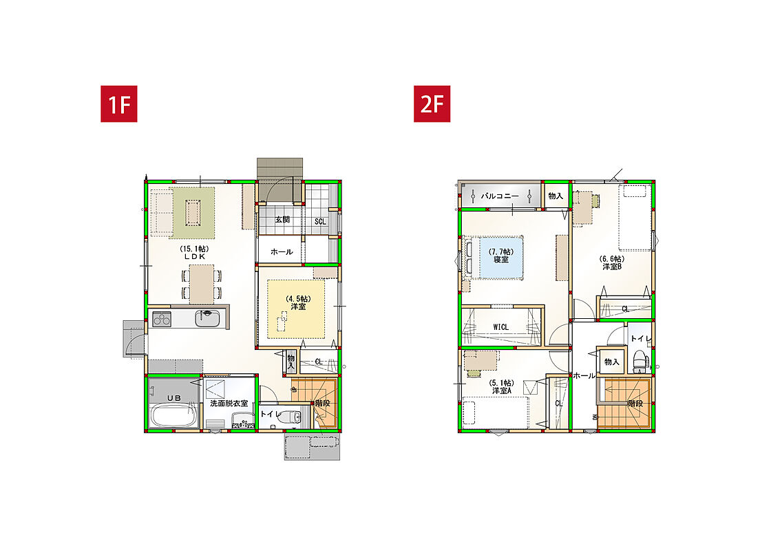 | 建物面積 | 103.02m2 | 土地面積 | 154.28m2(14号棟)~167.44m2(15号棟) |