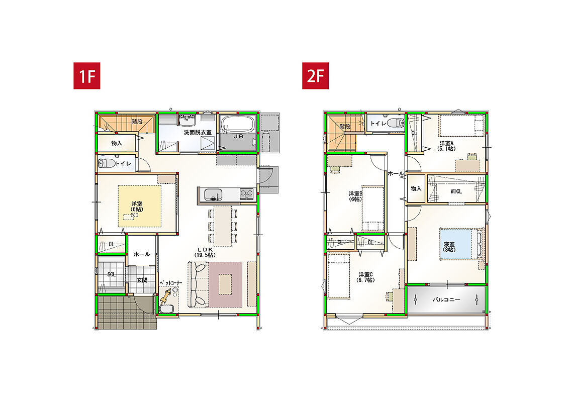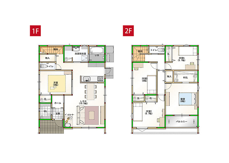 - ※完成予想図やCG合成画像は、門塀・植栽・庭・外観等、実際とは多少異なる場合があります。