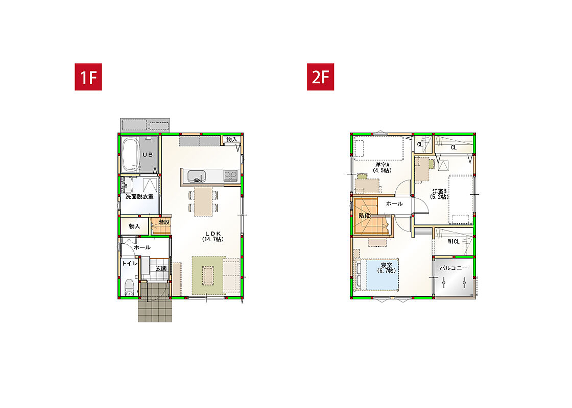 - ※完成予想図やCG合成画像は、門塀・植栽・庭・外観等、実際とは多少異なる場合があります。