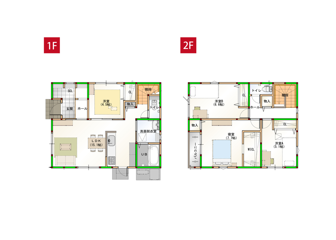- ※完成予想図やCG合成画像は、門塀・植栽・庭・外観等、実際とは多少異なる場合があります。