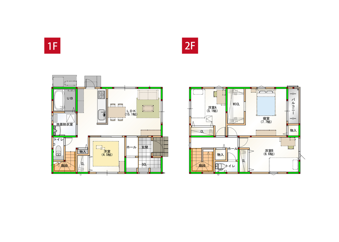 - ※完成予想図やCG合成画像は、門塀・植栽・庭・外観等、実際とは多少異なる場合があります。