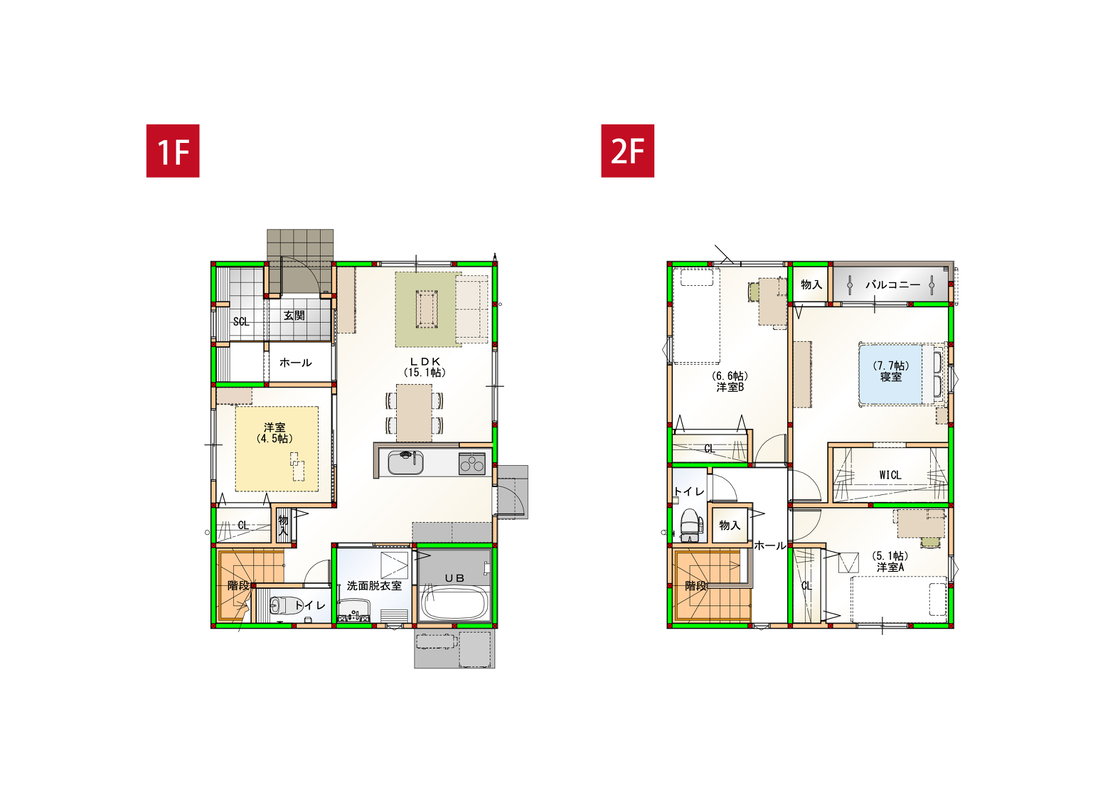 - ※完成予想図やCG合成画像は、門塀・植栽・庭・外観等、実際とは多少異なる場合があります。