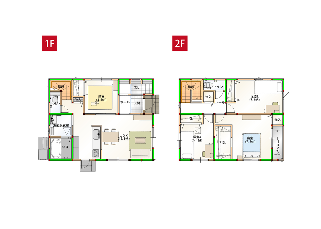 - ※完成予想図やCG合成画像は、門塀・植栽・庭・外観等、実際とは多少異なる場合があります。
