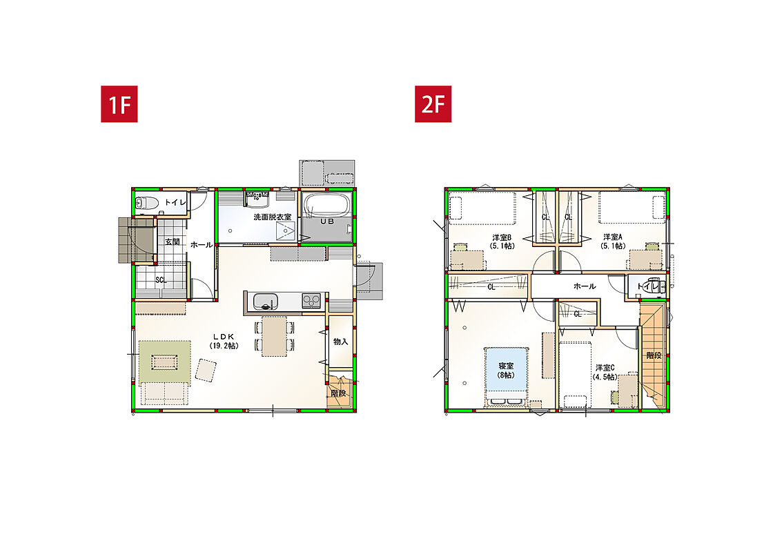 - ※完成予想図やCG合成画像は、門塀・植栽・庭・外観等、実際とは多少異なる場合があります。