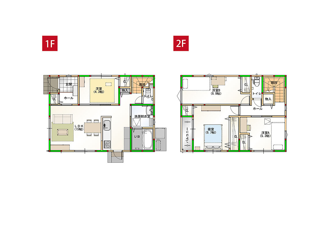 - ※完成予想図やCG合成画像は、門塀・植栽・庭・外観等、実際とは多少異なる場合があります。