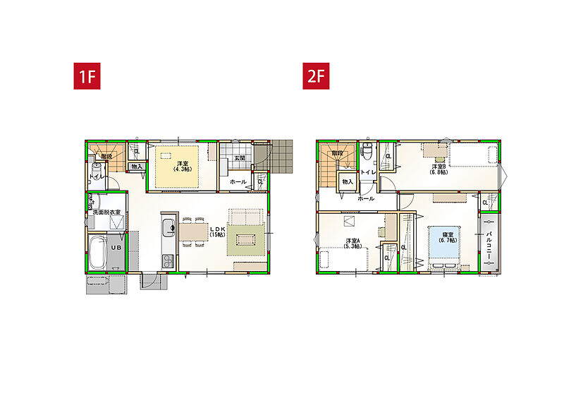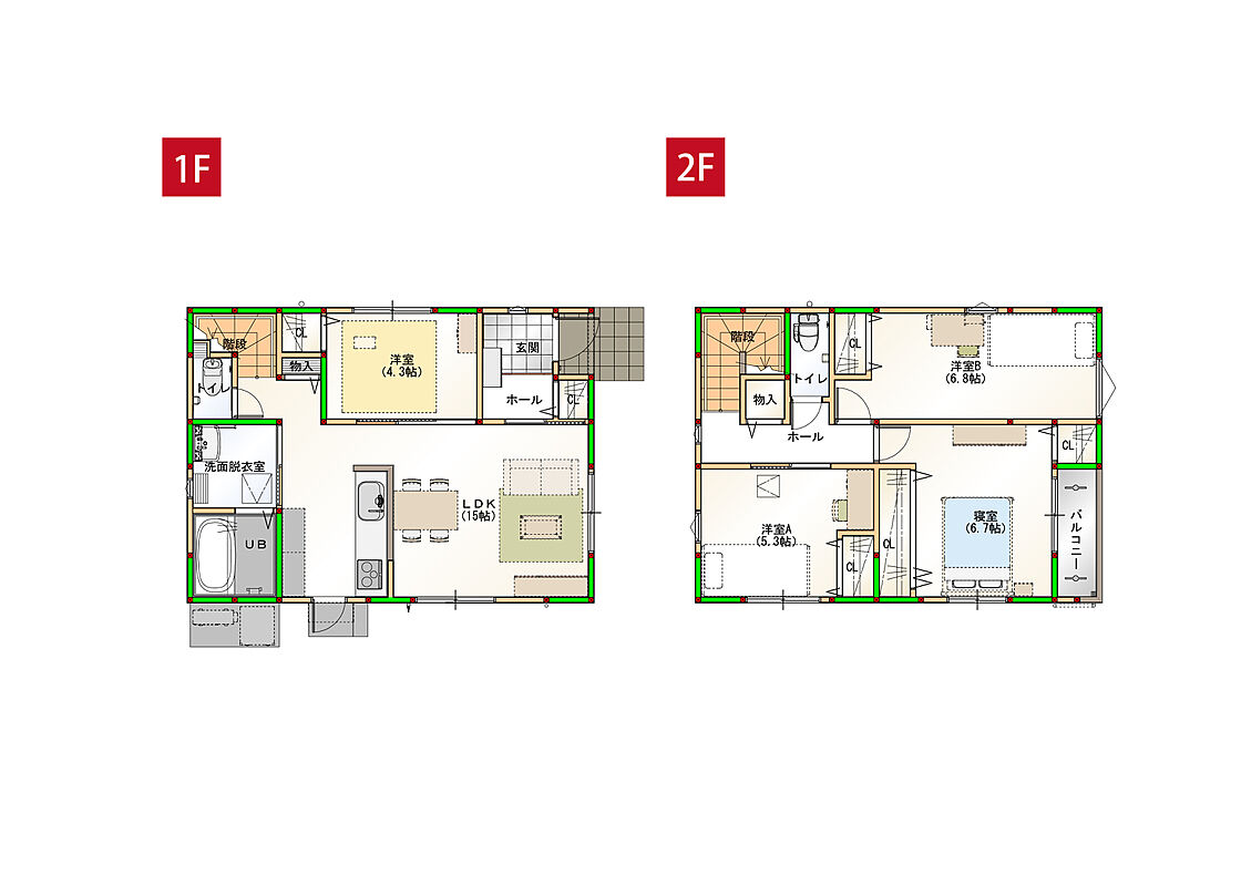 - ※完成予想図やCG合成画像は、門塀・植栽・庭・外観等、実際とは多少異なる場合があります。