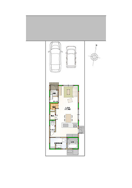 | 駐車場 | 2台 | 道路の幅員 | 北側4m(セットバック済み、私道負担0.19m2) |