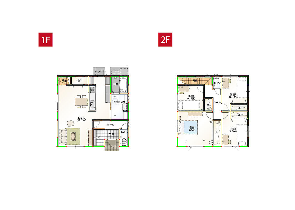 - ※完成予想図やCG合成画像は、門塀・植栽・庭・外観等、実際とは多少異なる場合があります。