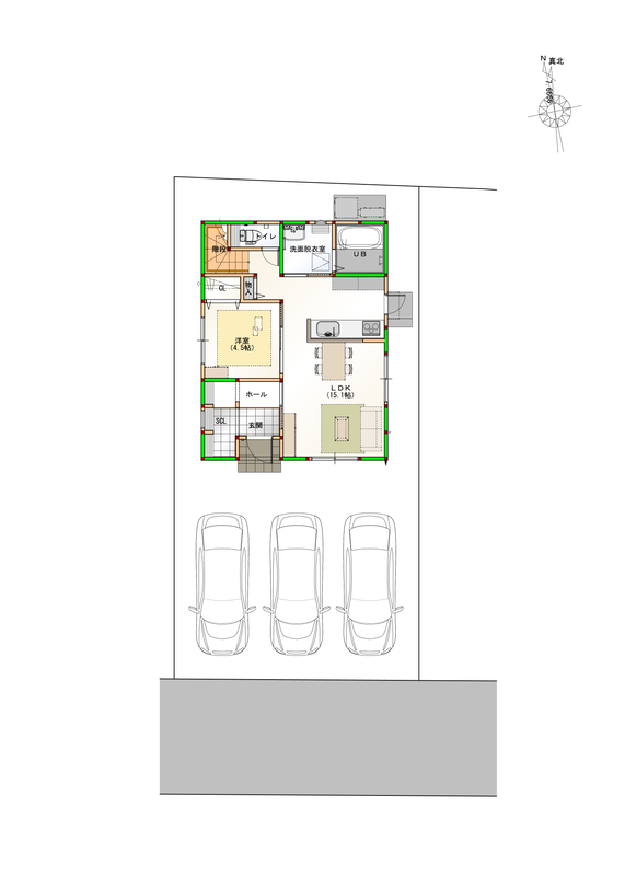 | 駐車場 | 1台 ~ 3台 | 道路の幅員 | 南側4m(私道負担16.86m2) |