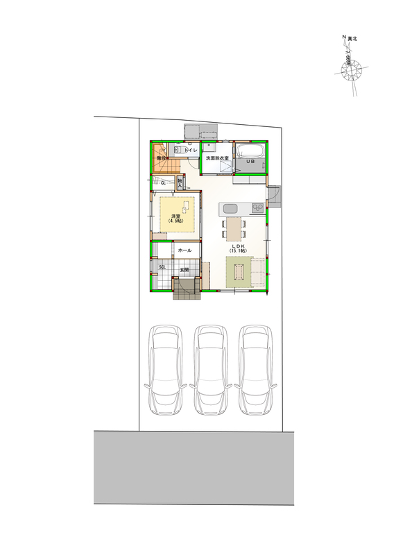 | 駐車場 | 1台 ~ 3台 | 道路の幅員 | 南側4m(私道負担16.12m2) |