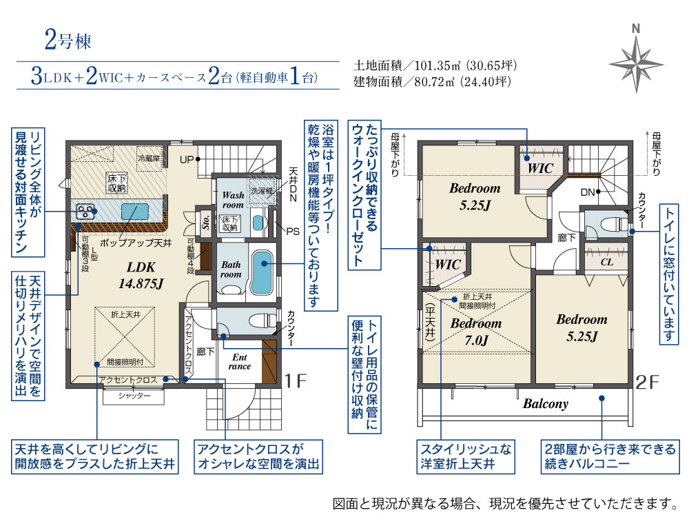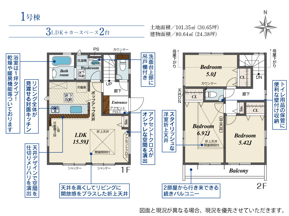 | 建物面積 | 80.64m2(約24.39坪)~80.72m2(約24.41坪) | 土地面積 | 101.35m2(約30.65坪) |