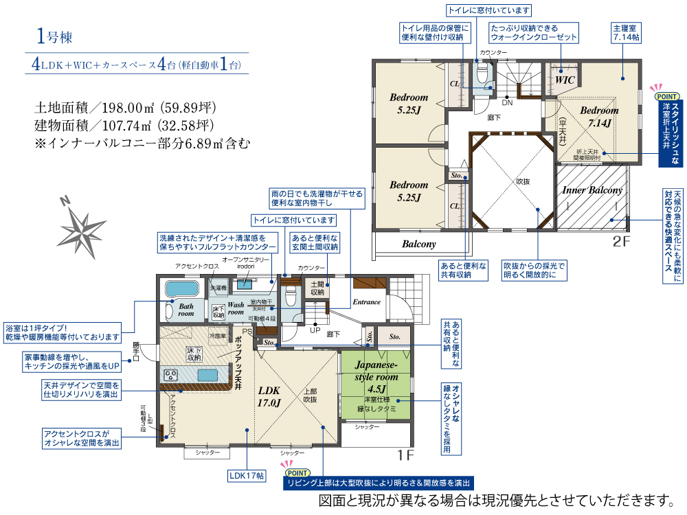 | 建物面積 | 107.74m2(約32.59坪) | 土地面積 | 198.00m2(約59.89坪) |