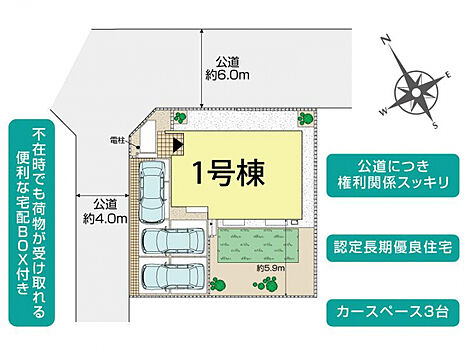 | 駐車場 | 3台 | 道路の幅員 | 北東6.0m公道、北西4.0m公道 |