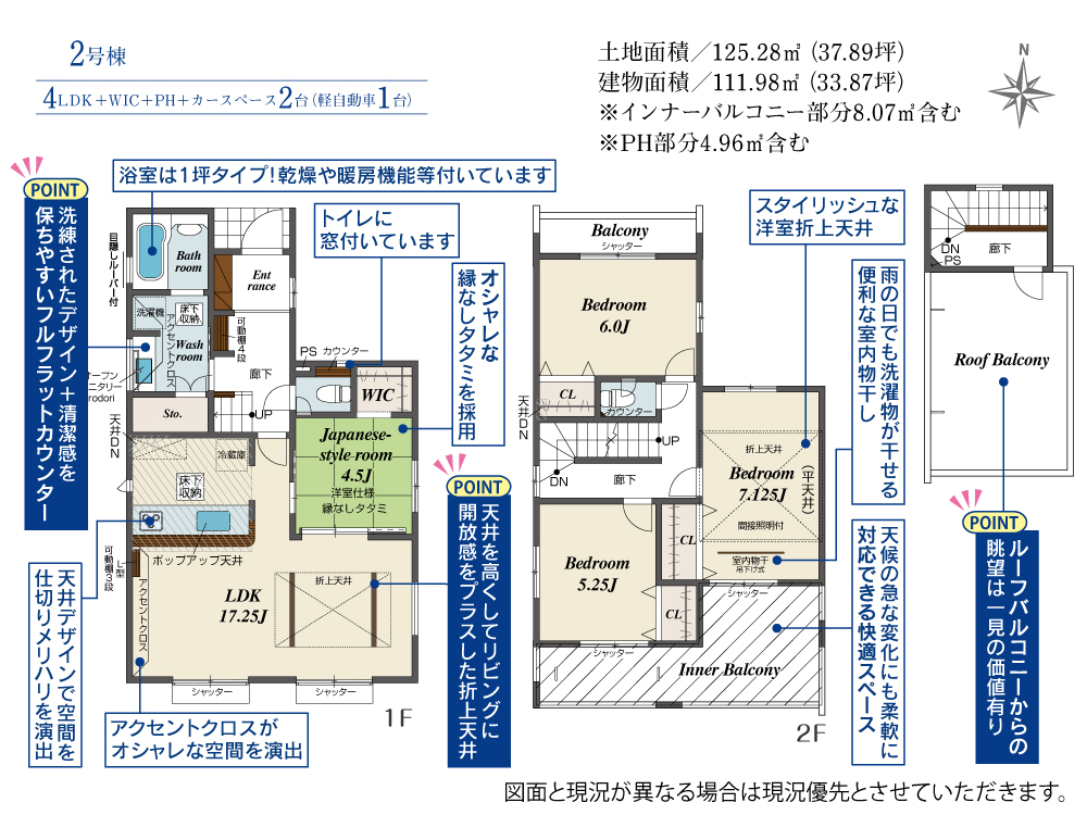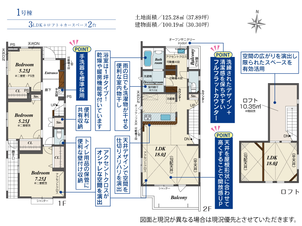 | 建物面積 | 100.19m2(約30.30坪)~111.98m2(約33.87坪) | 土地面積 | 125.28m2(約37.89坪) |