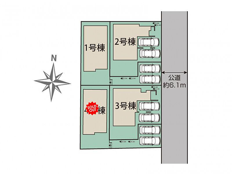 | 駐車場 | 2台 | 道路の幅員 | 東6.1m公道 |