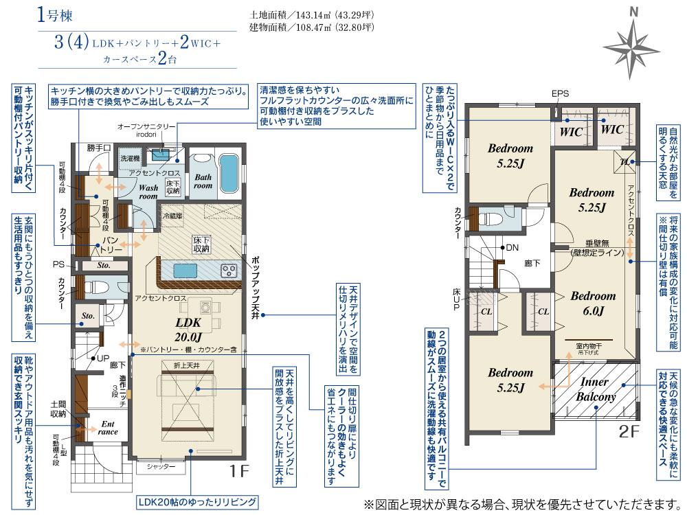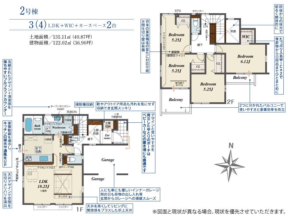 | 建物面積 | 108.47m2(約32.81坪)~122.02m2(約36.91坪) | 土地面積 | 133.53m2(約40.39坪)~143.14m2(約43.29坪) |