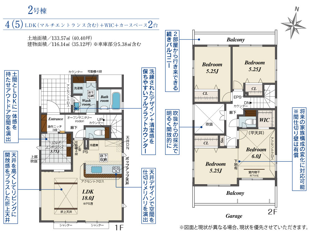 | 建物面積 | 107.59m2(約32.54坪)~116.14m2(約35.13坪) | 土地面積 | 133.57m2(約40.40坪) |