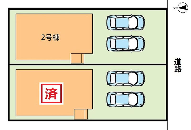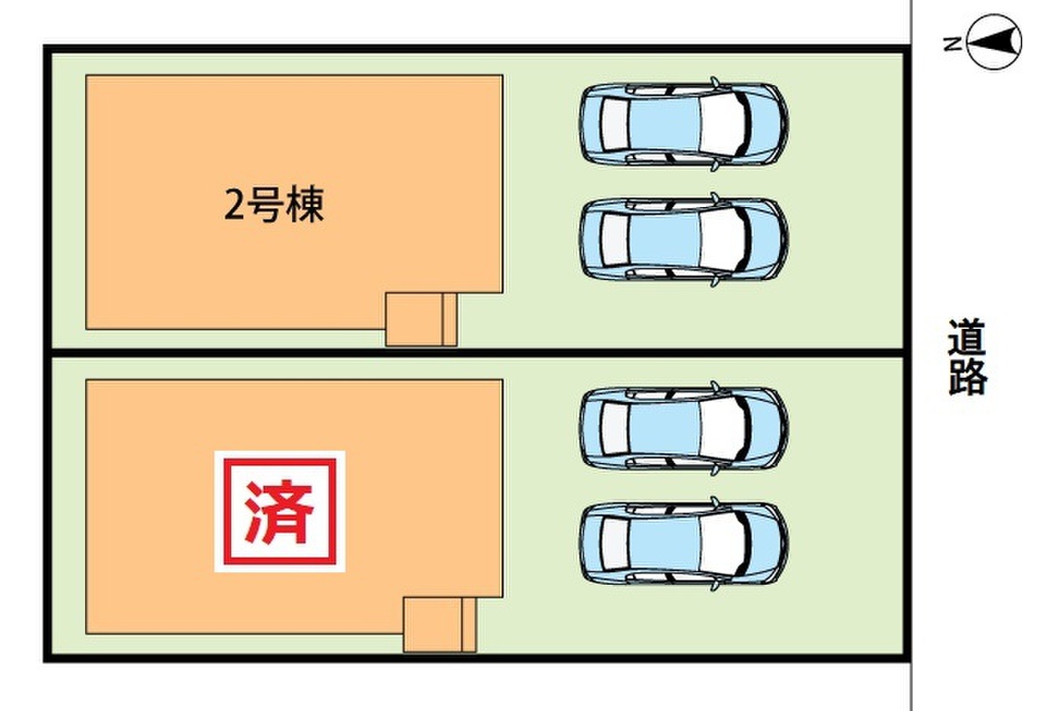 | 駐車場 | 2台 | 道路の幅員 | 南側6m、アスファルト舗装 |