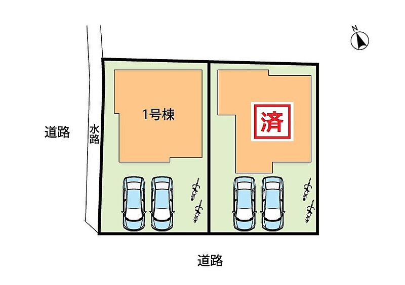 | 駐車場 | 2台 | 道路の幅員 | 南側6m アスファルト舗装 |