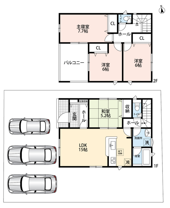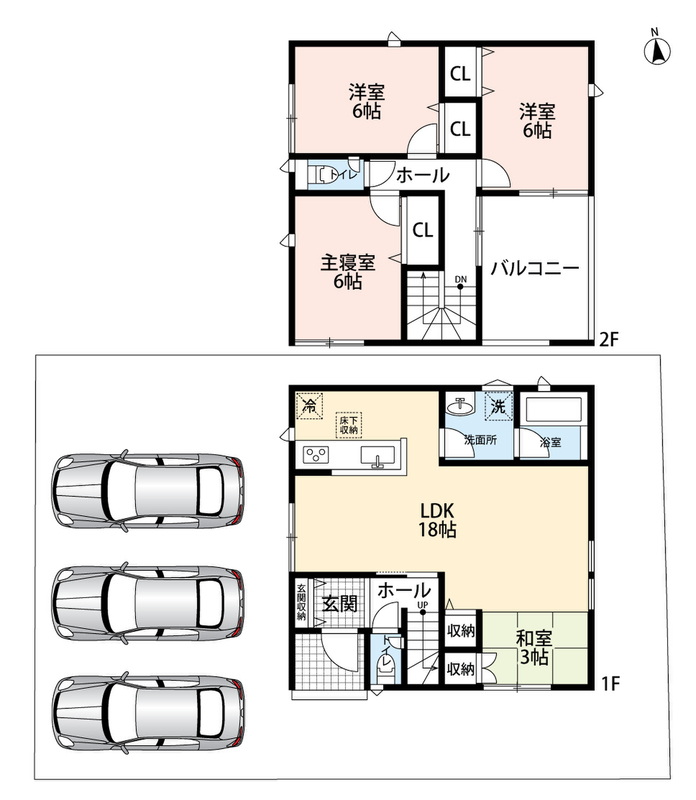 ・ゆとりのある敷地で並列駐車3台可能!