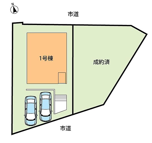 | 駐車場 | 2台 | 道路の幅員 | 南側4.3m、北側5m、アスファルト舗装 |