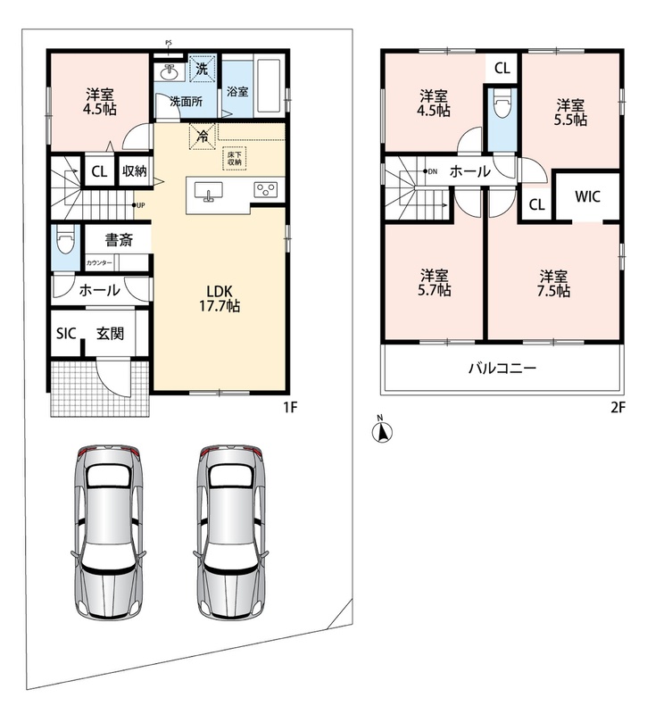・ゆとりのある敷地で並列駐車2台可能!