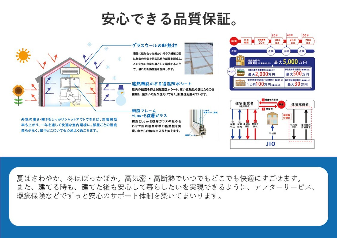 建てる時も、建てた後も安心して暮らしたいを実現できるように、アフターサービス、瑕疵保険などでずっと安心のサポート体制を築いてまいります。
