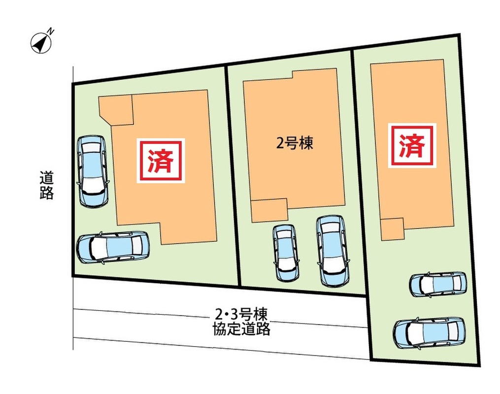 | 駐車場 | 2台 | 道路の幅員 | 南西側3.9m |