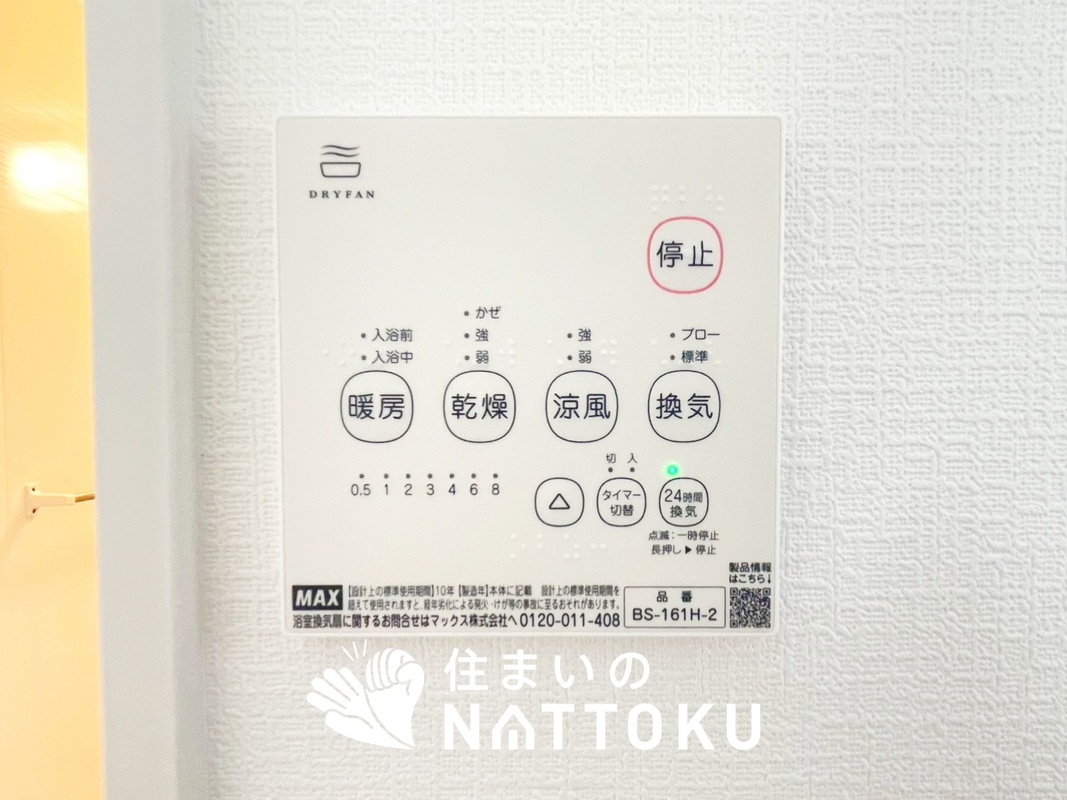 見やすいボタン配置で換気・暖房・乾燥・涼...