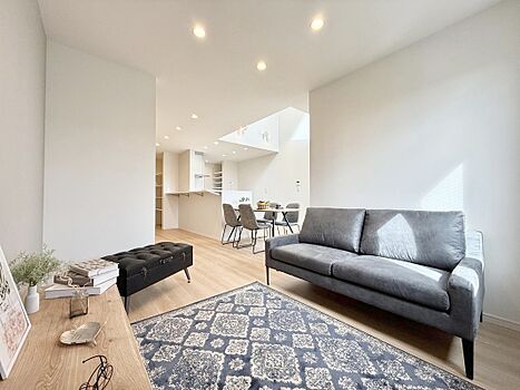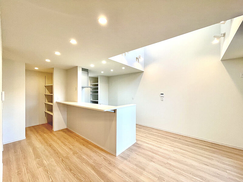 大型テレビも置ける約20帖の広々リビングは、陽当りが良く、部屋いっぱいに明るい陽光が広がります!明るく居心地の良いリビング空間には、自然と家族が集まります♪