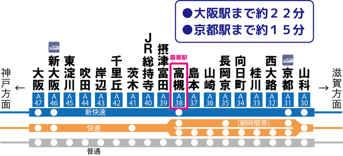 JR東海道・山陽本線「高槻」駅 徒歩20分 |