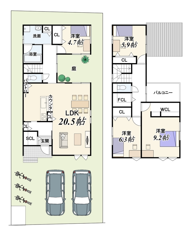 - ※完成予想図やCG合成画像は、門塀・植栽・庭・外観等、実際とは多少異なる場合があります。