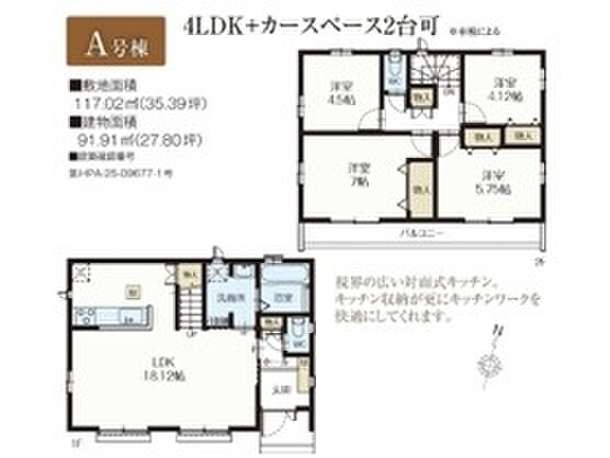 A号棟 間取り 4LDK 価格 5090万円 建物面積 117.02m2 土地面積 91.91m2 -