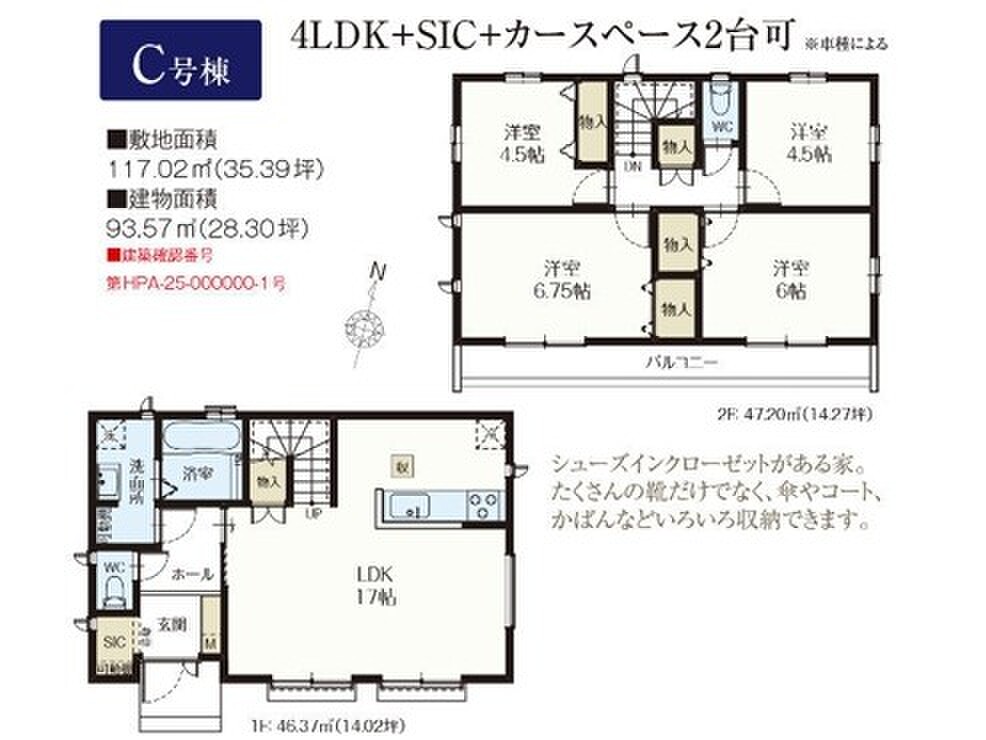 C号棟 間取り 4LDK 価格 5390万円 建物面積 93.57m2 土地面積 117.02m2 -