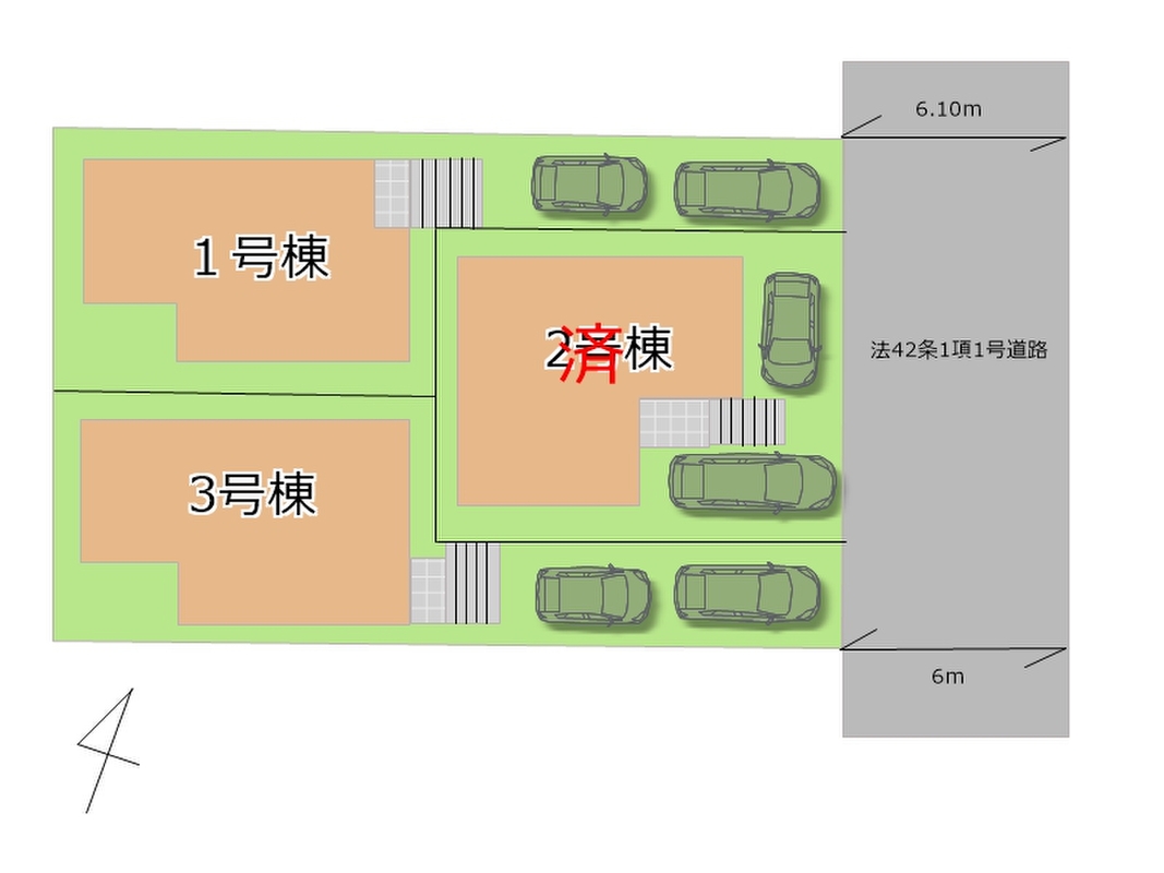 | 駐車場 | 2台 | 道路の幅員 | 東側公道6m |
