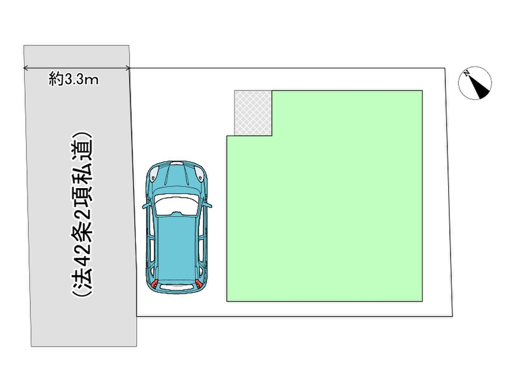| 駐車場 | 1台 | 道路の幅員 | 北西側約3.3m公道 |