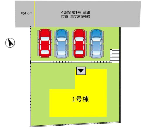 | 駐車場 | 4台 | 道路の幅員 | 北側4.6m公道 |