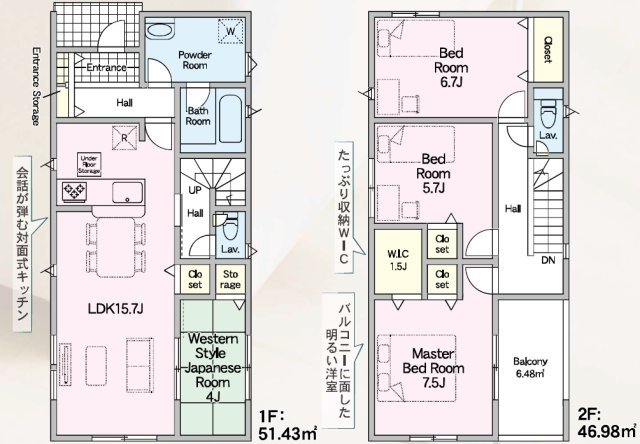 2号棟 間取り 4LDK 価格 2188万円 建物面積 98.41m2 土地面積 146.80m2 -