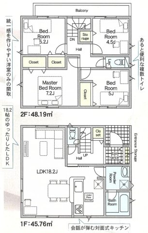 1号棟 間取り 4LDK 価格 2888万円 建物面積 93.95m2 土地面積 112.53m2 -
