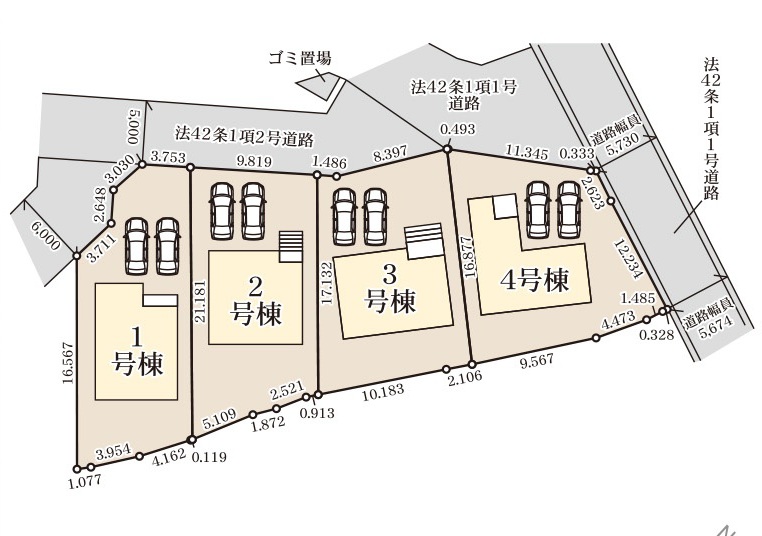 | 駐車場 | 2台 | 道路の幅員 | 北西側5.0m公道 |