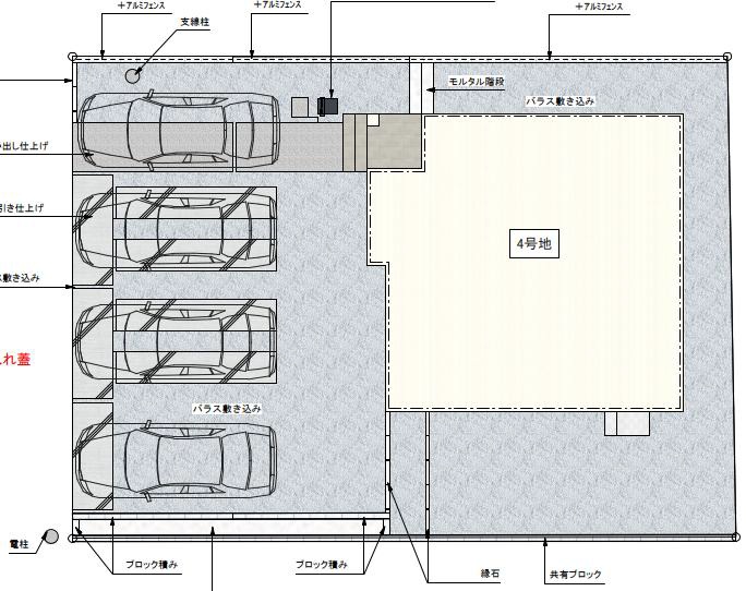 | 駐車場 | 4台 | 道路の幅員 | 南東側4.1m公道 |