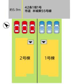 | 駐車場 | 3台 | 道路の幅員 | 北東側5.9m公道 |