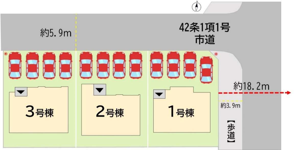 | 駐車場 | 4台 | 道路の幅員 | 北側5.9m公道 |