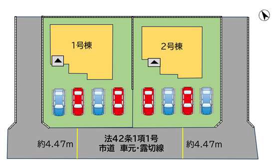 | 駐車場 | 4台 | 道路の幅員 | 南側4.4m公道 |